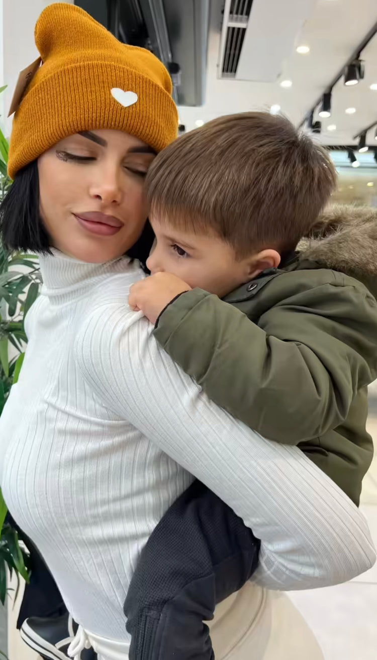 🤍 Notre bonnet caramel à coeur blanc est l'accessoire qui fait toute la différence
