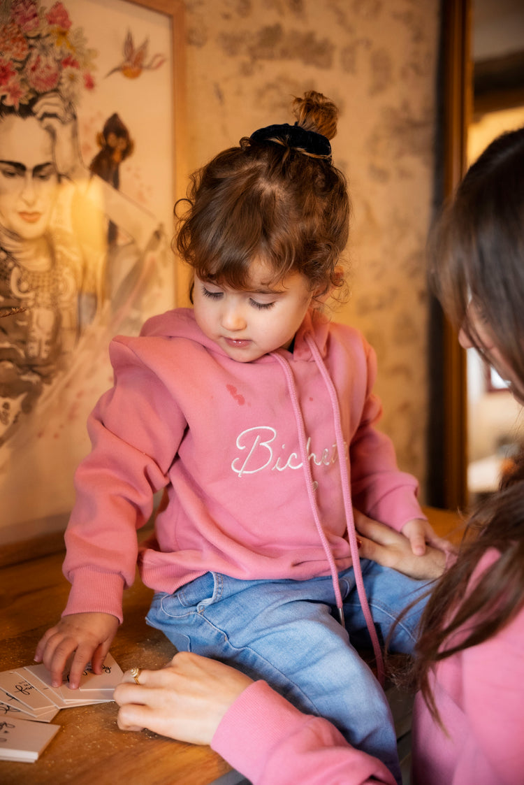 Votre sweat Bichette favori est de retour dans sa version rose à capuche. On adore sa finition toute douce à l'intérieur qui maximise le confort des kids. Choisissez sa taille habituelle.
