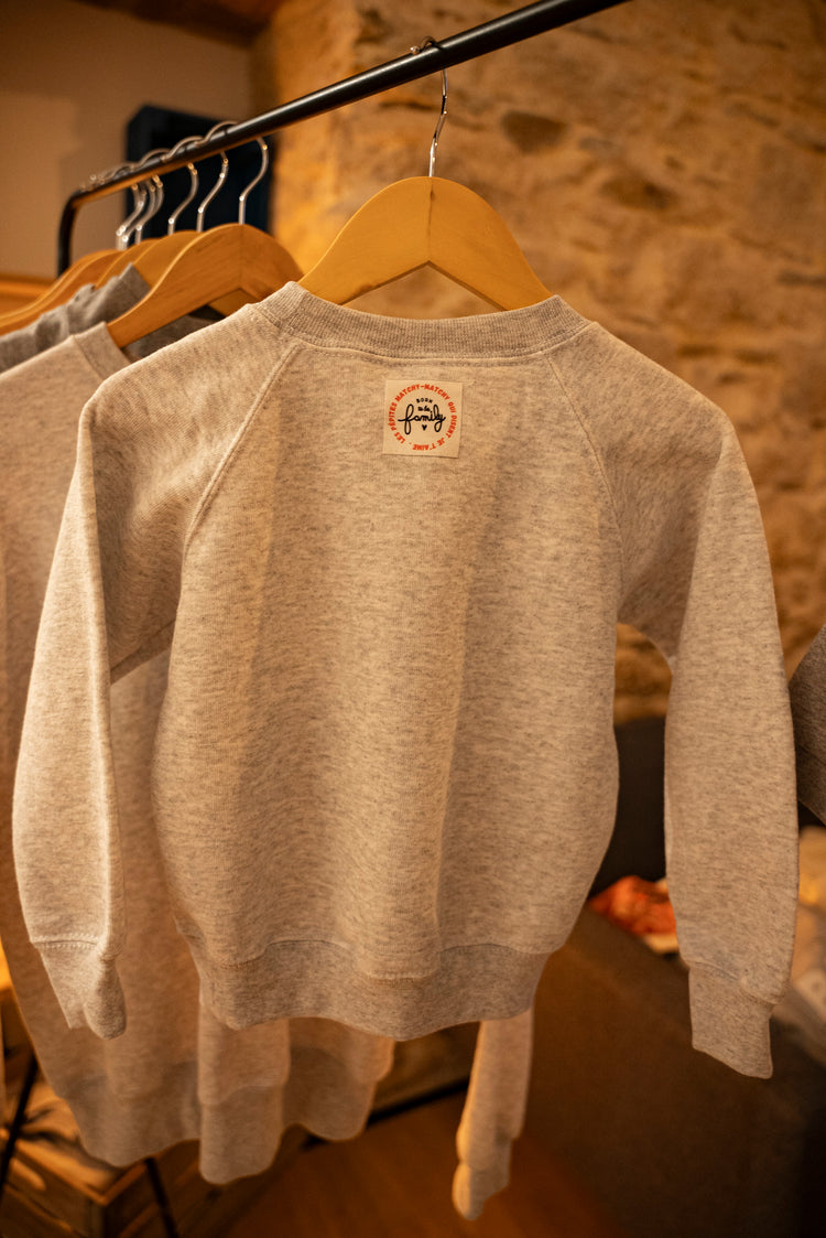 On craque pour la douceur de sa matière, sa jolie couleur gris chiné et sa broderie qui raconte l'essentiel.