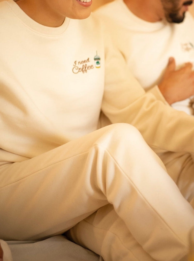 Le pants Coffee Milk est douillet et stylé avec son cordon de serrage ton sur ton et sa poche plaquée au dos. Le petit + ? Le joli logo Born to be Family en broderie ton sur ton en bas de poche.