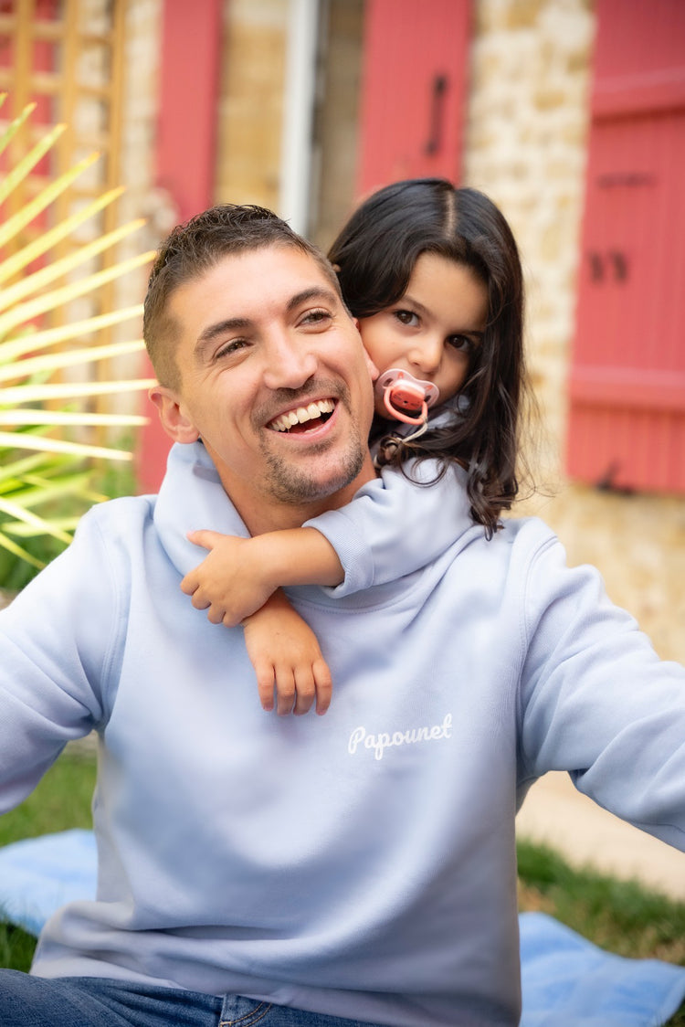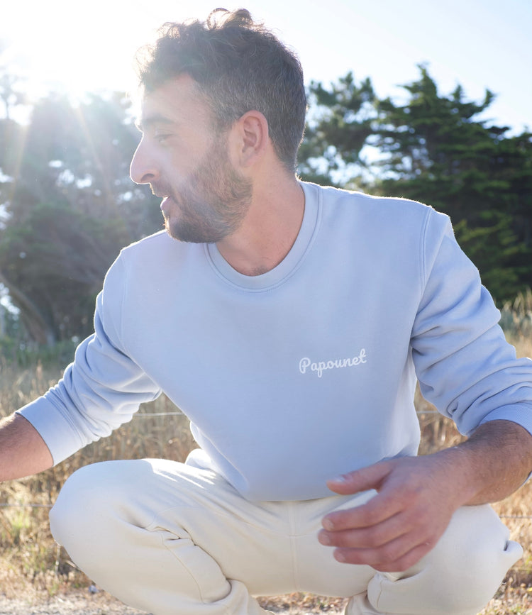 Craquez pour le sweat Papounet, tout doux et tout confort, sa coupe vous donnera une allure à la fois cool et raffinée. On est fan de sa couleur bleu pastel 🩵