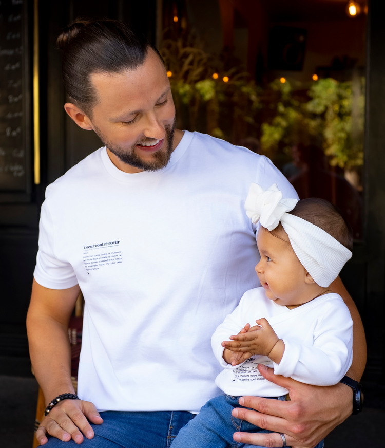 Notre t-shirt cœur contre cœur est une véritable invitation à la tendresse. Son design épuré et minimaliste en fera l’allié de toutes vos tenues.
